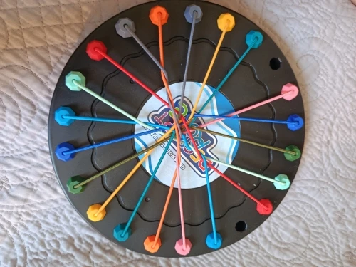 - Insert both ends of 10 vibrant ropes (plastic-tipped) into the board’s 22 holes