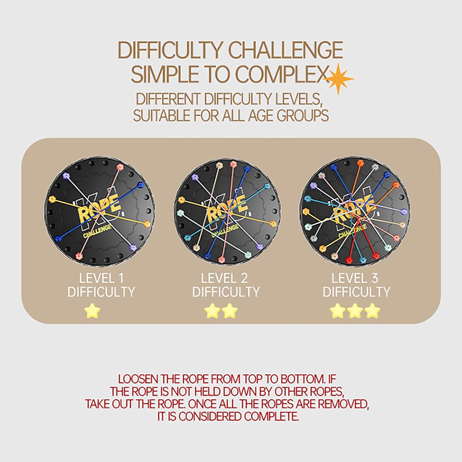 - Multi-Level Difficulty for All Ages: "From simple board games for kids (3-4 ropes) to complex puzzles for adults (10-rope mazes), this game grows with you! More knots = tougher challenges, perfect for fans of strategy-based board games!"